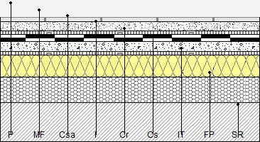 | Cobertura plana acessível, não ventilada, com pavimento fixo, tipo convencional, para tráfego pedonal privado. Impermeabilização com lâminas asfálticas, tipo bicamada | ||